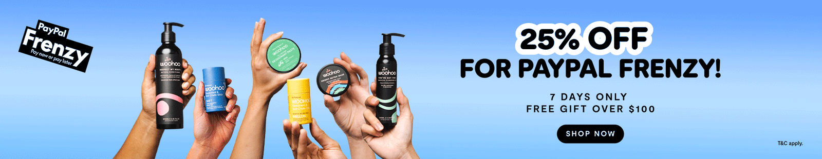 * Special Offer Terms & Conditions: Offer applies to products listed at https://www.woohoobody.com.au/collections/sale. Prices as marked online. No further discounts apply. Excludes gift cards, factory 2nds, sample packs, bundles, subscriptions, and wholesale orders. Sale ends midnight 9 March 2026 AEST unless sold out earlier. No rainchecks, sorry. Offer is not valid in conjunction with any other offers or discount codes. We reserve the right to cancel any order due to unauthorised, altered, or ineligible use of this offer, and to modify or cancel the promotion if required due to system error or unforeseen circumstances. Enjoy, Woohoo-ers!